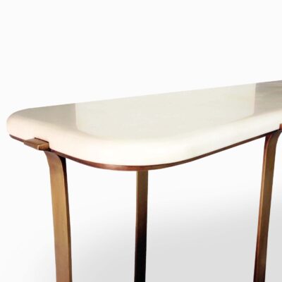Understated yet impactful, the Arch Console is a sculptural piece that celebrates the beauty of restraint. With a finely textured parchment top resting on an elegantly curved cast bronze base, it quietly commands attention without excess. Every contour of the Arch Console speaks to balance, motion, and timeless design.