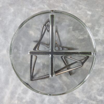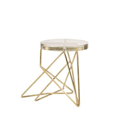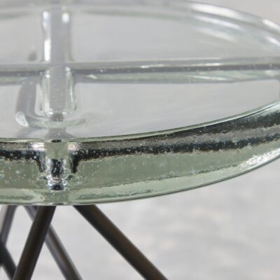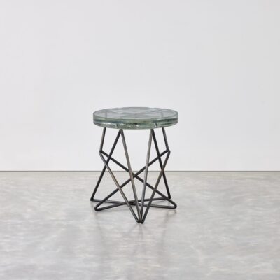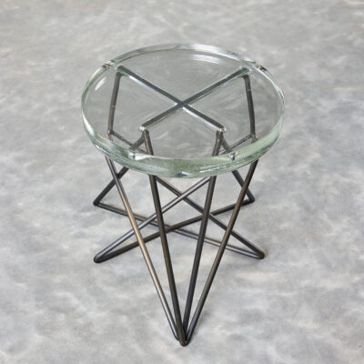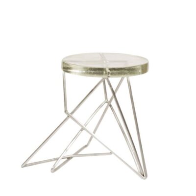 Sculptural stool or side table with metal base and a cast glass top.