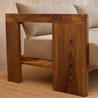 The Ava sofa was designed for spacious comfort with generous proportions and extra comfort. Its stance is relaxed and offers a feeling of sturdy security. When crafted from teak timber Ava can live both indoors and out with the natural quality of the wood protecting from the elements naturally. Customize the fabric and wood species as needed to suit any project.