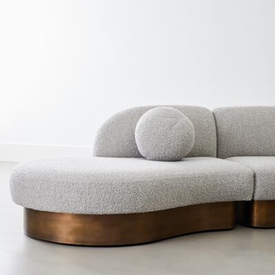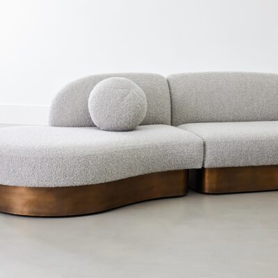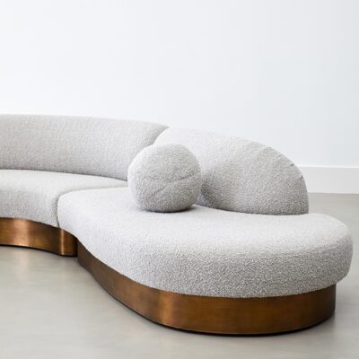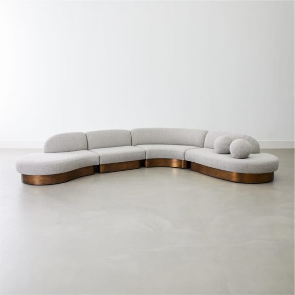 Upholstered modular biomorphic 4-Piece sectional on inset metal or wood base.