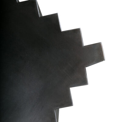 Blackened steel with notched edge detail.