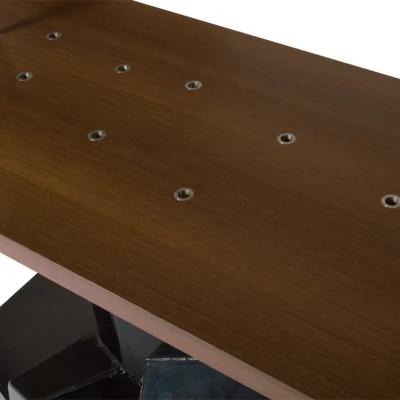 The Datum Center Table is constructed with Wenge, Stainless Steel and Patinated Steel. Edition of 50 + 1 AP.