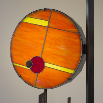 The Dear Mr. Fantasy Floor Lamp is constructed with bronze, stained glass, patinate steel and dimmable LED lights. One of a Kind.