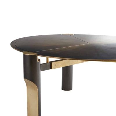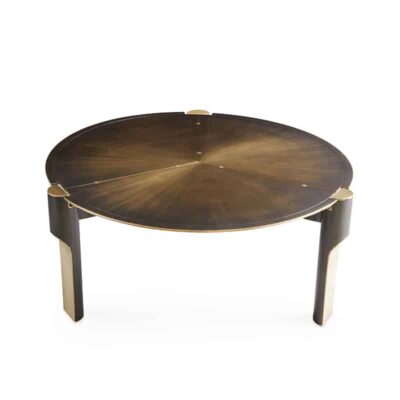 Satin brass, brass with hand rubbed bronze patina, and blackened steel.