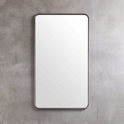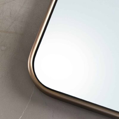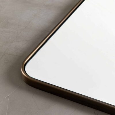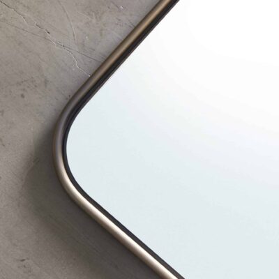 Hand-formed brass mirror with a bullnose edge and a floating inset mirror pane.