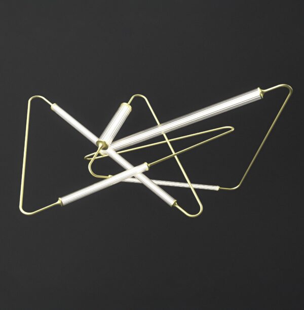 The Equinox Chandelier is a nod to kinetic 20th-century modern lighting with a hand-formed metal frame, reeded or smooth glass tubing, and hand-poured resin LED diffusers. A refined study of lines and sinuous curves, the Equinox is available in a wide variety of sizes and finishes. Installation by the artist’s studio or by an expert installer with remote support is recommended.