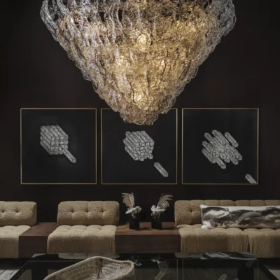Rendered in Eggshell, the Espacio Series explores the innate sense of movement depicted across three canvases evoking the dissemination of time.