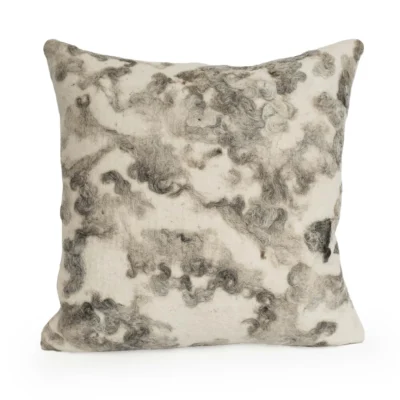 This fabric features raw, undyed grey wool from Gotland sheep flat-felted onto a cream Merino-glazed 'canvas' of Climate Beneficial Wool™ sourced locally from our Fibershed. Available exclusively at Coup D'Etat Showroom in San Francisco and Los Angeles.