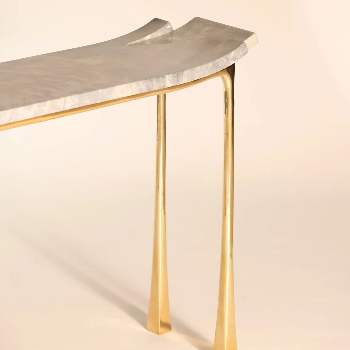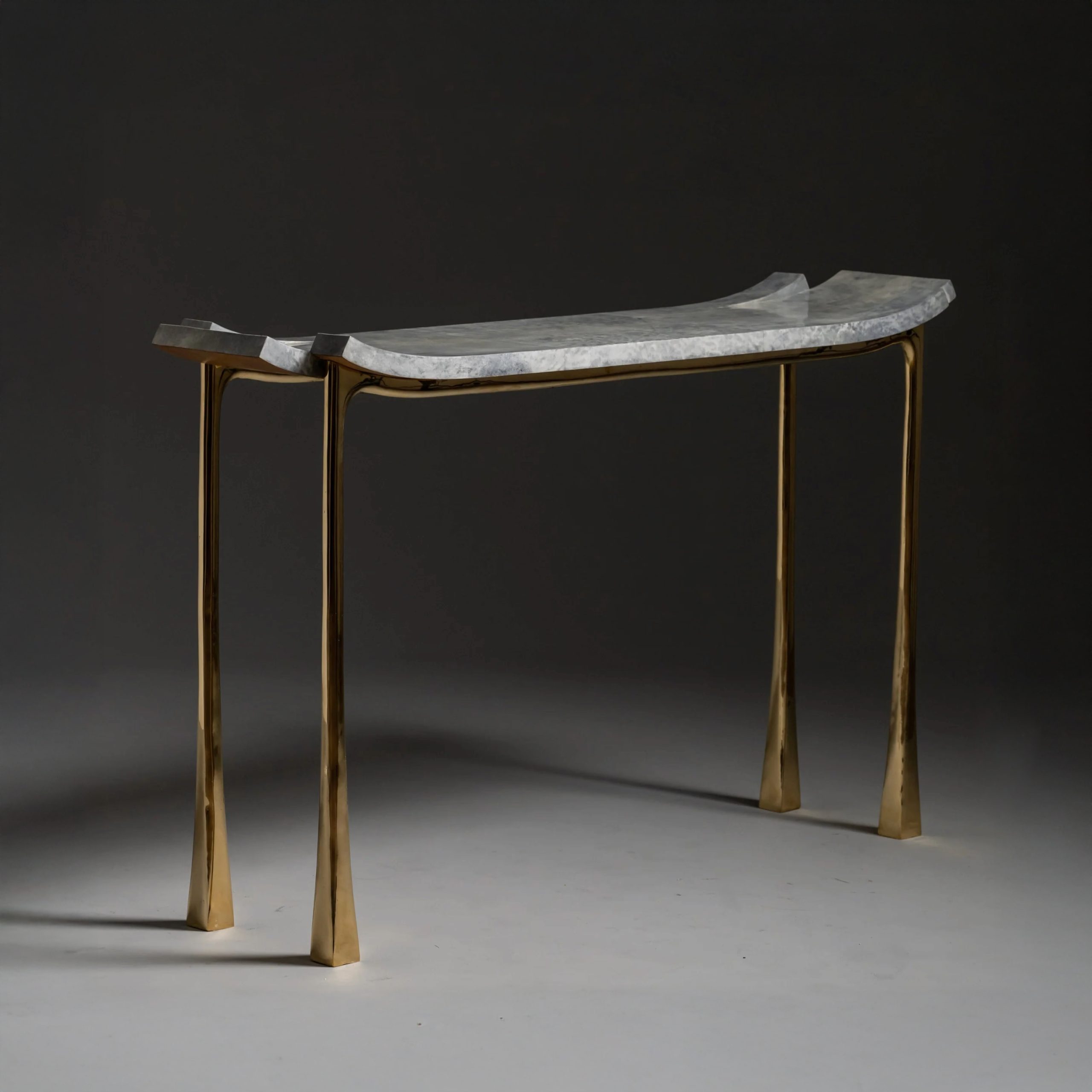 The Hudley Console table is contemporary, deluxe, and playful. Scooped and sliced, tapered yet humorously stocky.