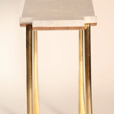The Hudley Console table is contemporary, deluxe, and playful. Scooped and sliced, tapered yet humorously stocky.