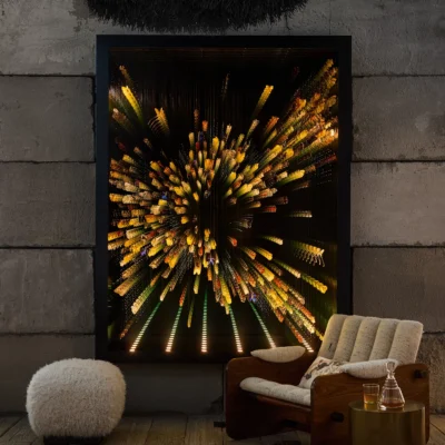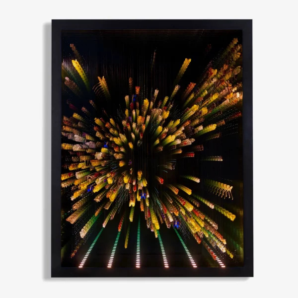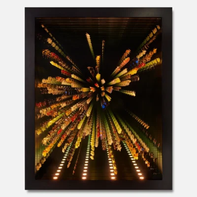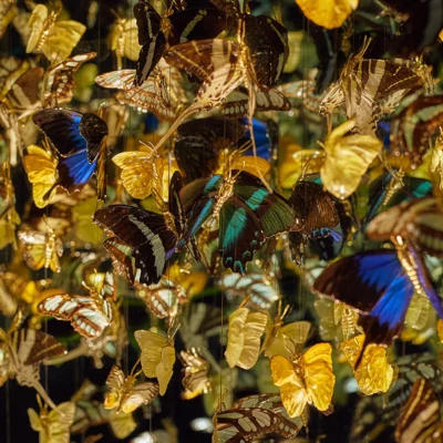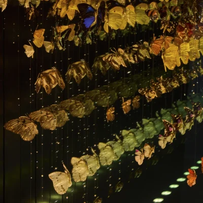 "Kaleidoscope" by Jocelyn Marsh extends this dialogue from the "Infinite Butterflies" series. Much like peering into a kaleidoscope, this artwork invites viewers into another world filled with bright colors and mesmerizing patterns. The larger-than-life installation offers an immersive experience, simulating the sensation of being surrounded by a vibrant swarm of butterflies.