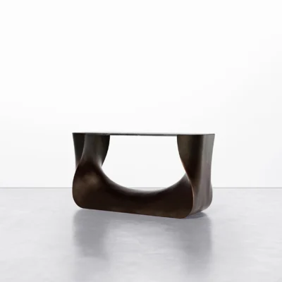 The collection is available in several sizes and finishes, offering a testament to both nature’s grandeur and artisanal innovation. Tabletop options include walnut, oak, or stone, accommodating diverse aesthetic preferences.