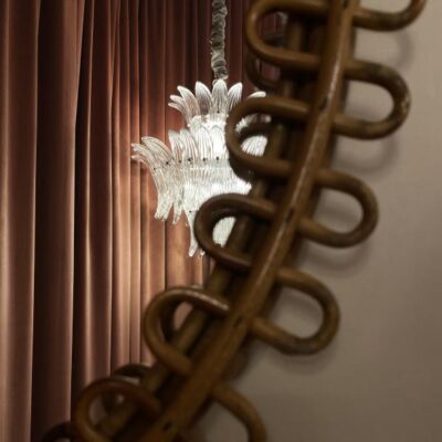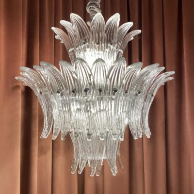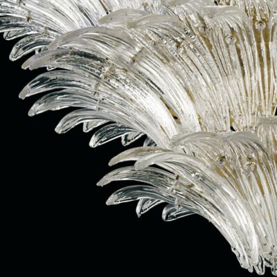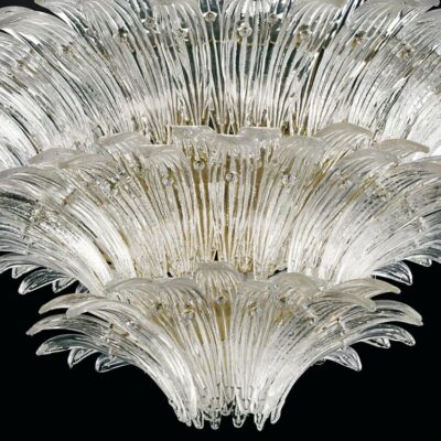 A collection that stands out for precious workmanship rigorously done by hand, result of stylistic research that draws on history, granting it a contemporary interpretation. Fans of crystal leaves, placed to form two, three and four levels, for an intriguing take on Art Deco.