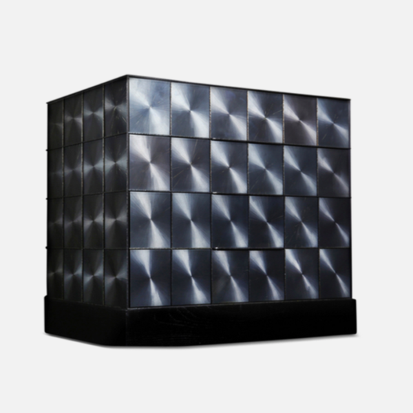 Four-drawer blackened brass and walnItem Number: CG-JONES-DAVIES-CABINETut chest with antique mirror top.