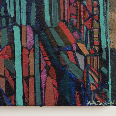 Los Angeles-based artist Leslie Nix is known for her singular personal style. With an interest in transformative materials, her process relies on experimentation, working in the mediums of oil on canvas, bronze, and glass. Her paintings, sculptural lamps, and decorative objects are influenced by her travels, including experiences in Africa. Nix received her BFA from the Savannah College of Art and Design.