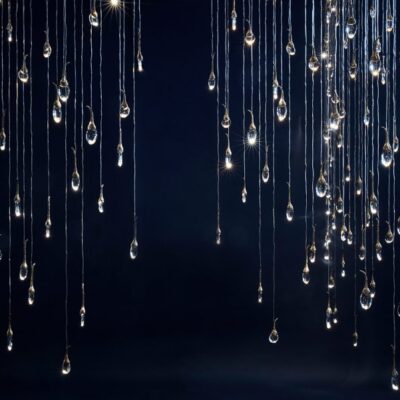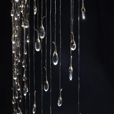 Solid cast bronze buds available in polished bronze or satin nickel finish, each housing glass drop illuminated by an LED.