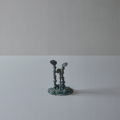 "Small Forest," Bronze with applied verdigris patina on rocky base.