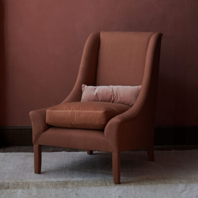Traditionally upholstered beech frame, double cone springs and cushions with piping.