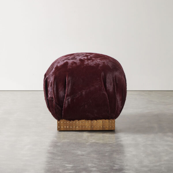 Coup Studio Sprung Pouffe with custom brass base by artist Damian Jones.