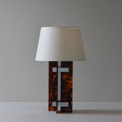 Faux tortoise acrylic table lamp with chrome fittings.