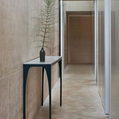 Granite grey steel frame with polished plaster finished top.