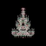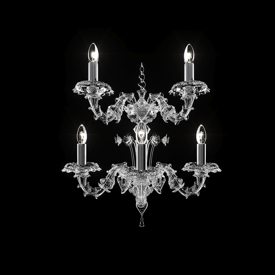The collection of Venetian style chandeliers is completed by two wall lamps in different sizes, taking up the same characteristic elements such as leaves, flowers and pinnacles.
