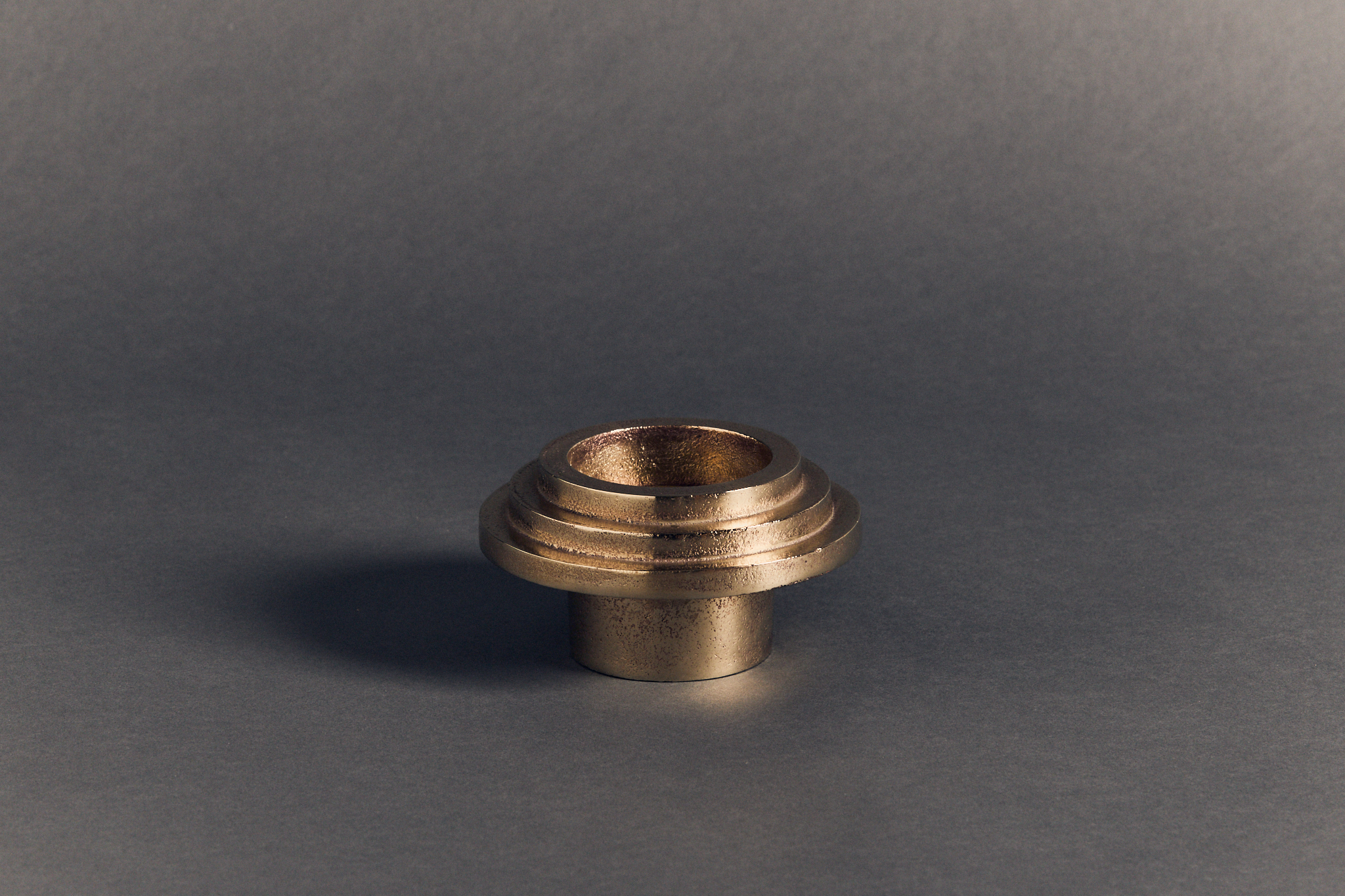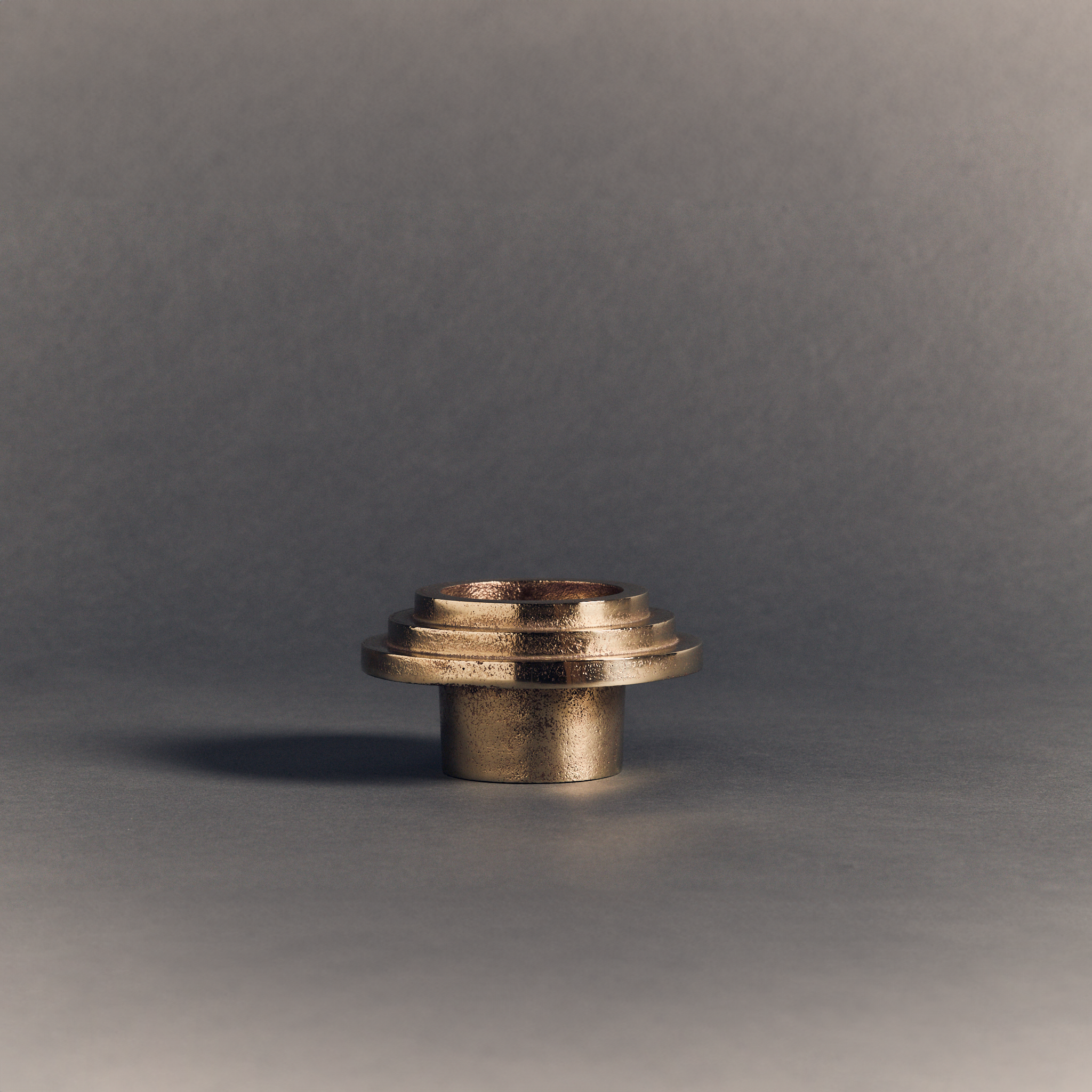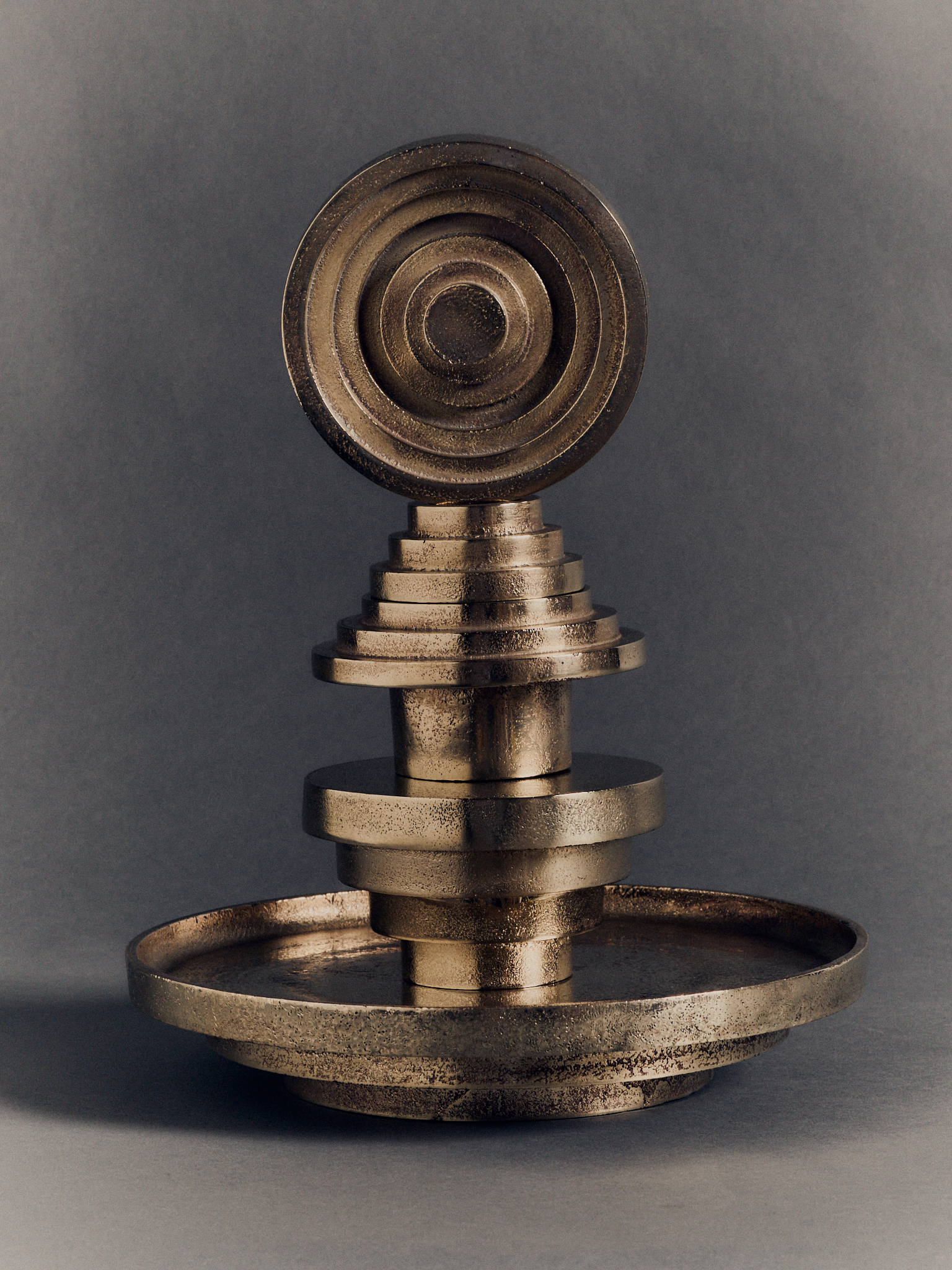 THALAMOS, an exploration of Art Deco silhouettes represented in five ritualistic cast brass forms. Symbolising intimacy, secrecy, and sanctuary, and drawing on the Greek word ‘thalamus’ – meaning an inner chamber often containing sacred treasures – the collection centres around the theme of the inner sanctum; of intimate, daily rituals and personal sanctuary.
