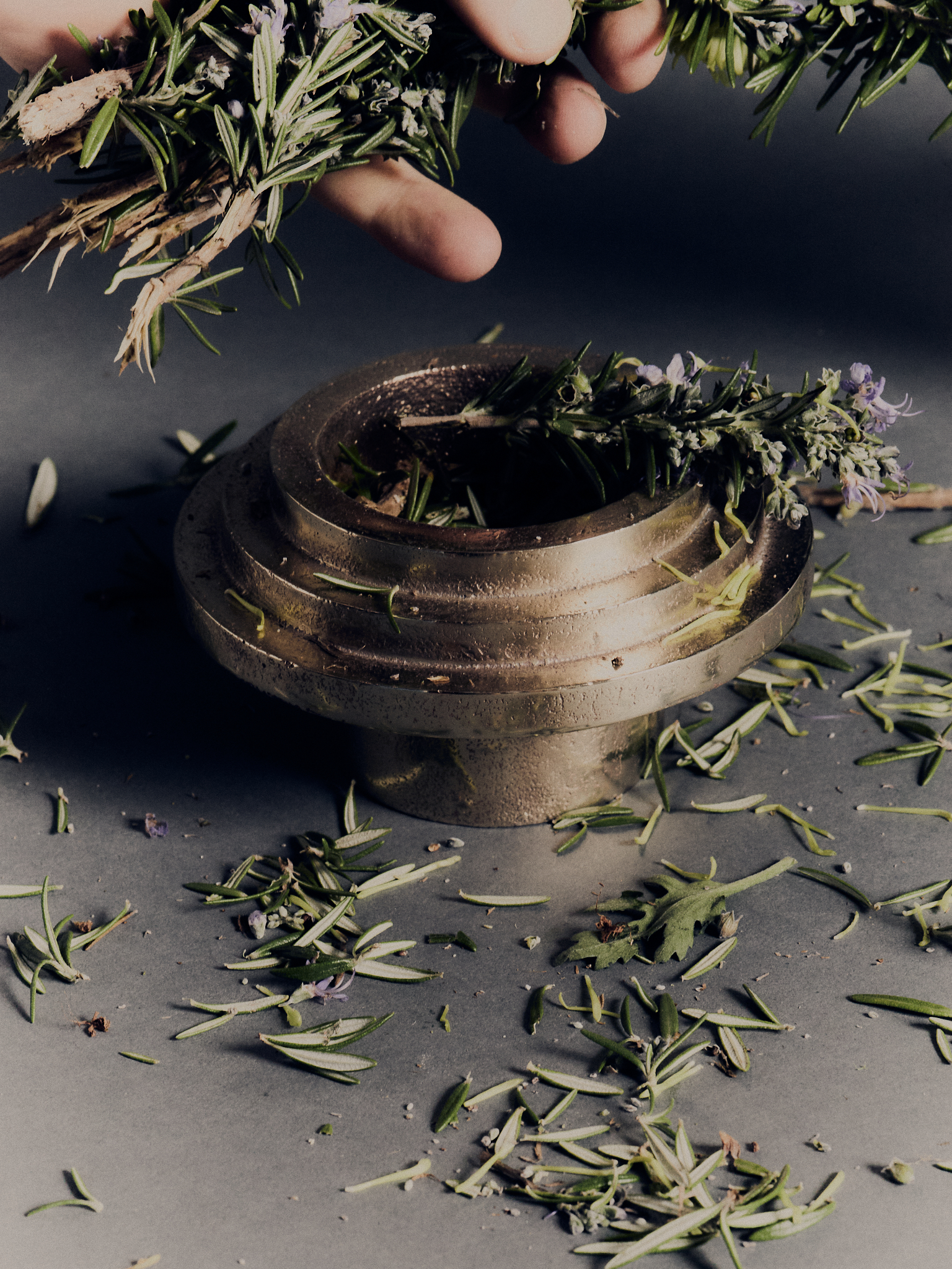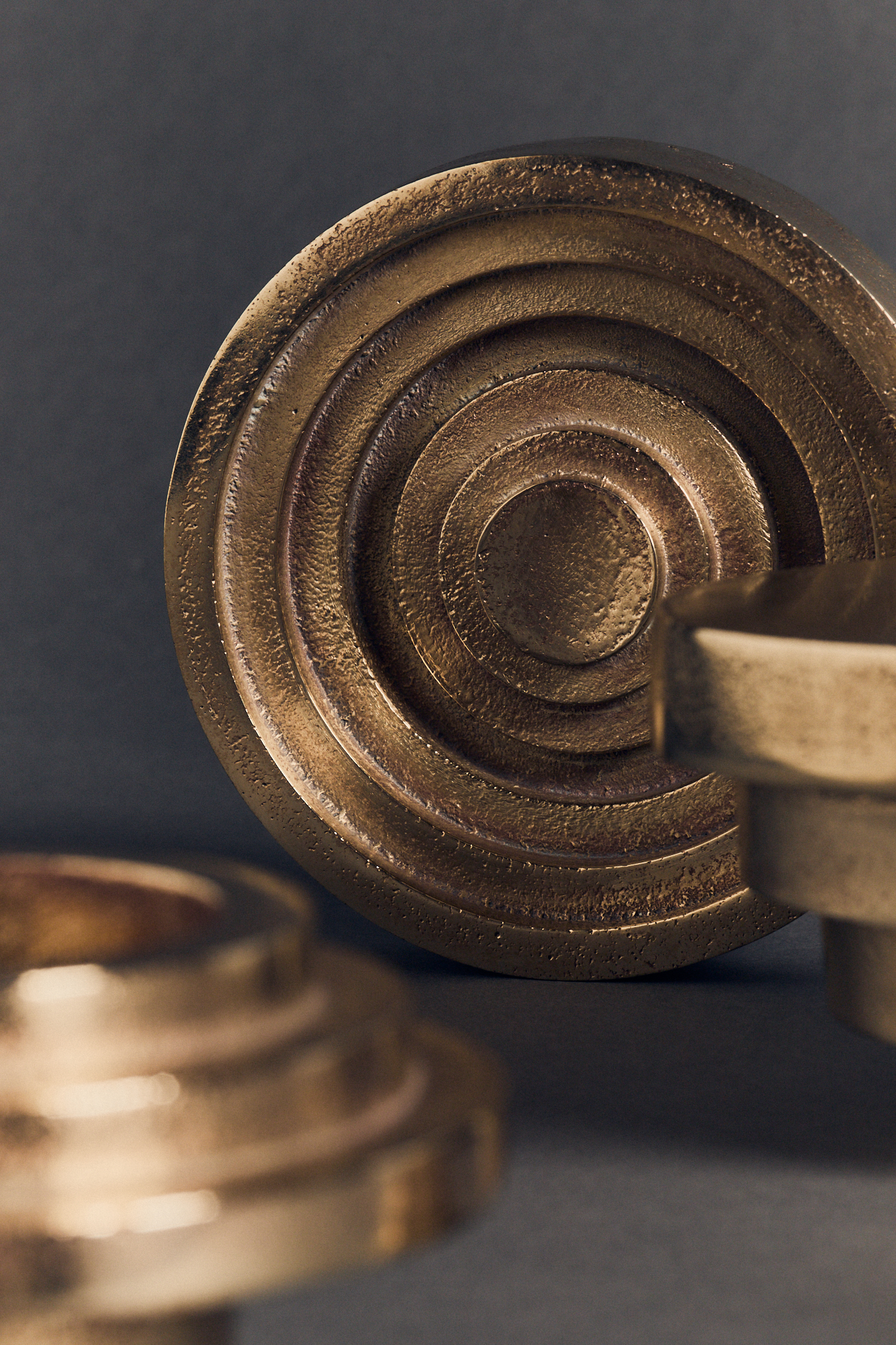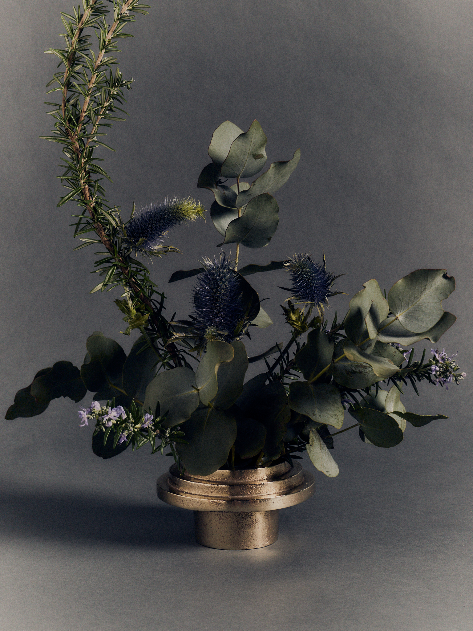 THALAMOS, an exploration of Art Deco silhouettes represented in five ritualistic cast brass forms. Symbolising intimacy, secrecy, and sanctuary, and drawing on the Greek word ‘thalamus’ – meaning an inner chamber often containing sacred treasures – the collection centres around the theme of the inner sanctum; of intimate, daily rituals and personal sanctuary.