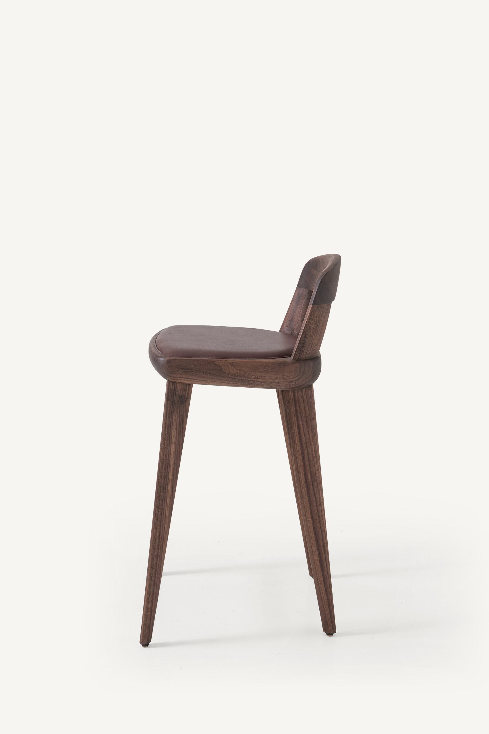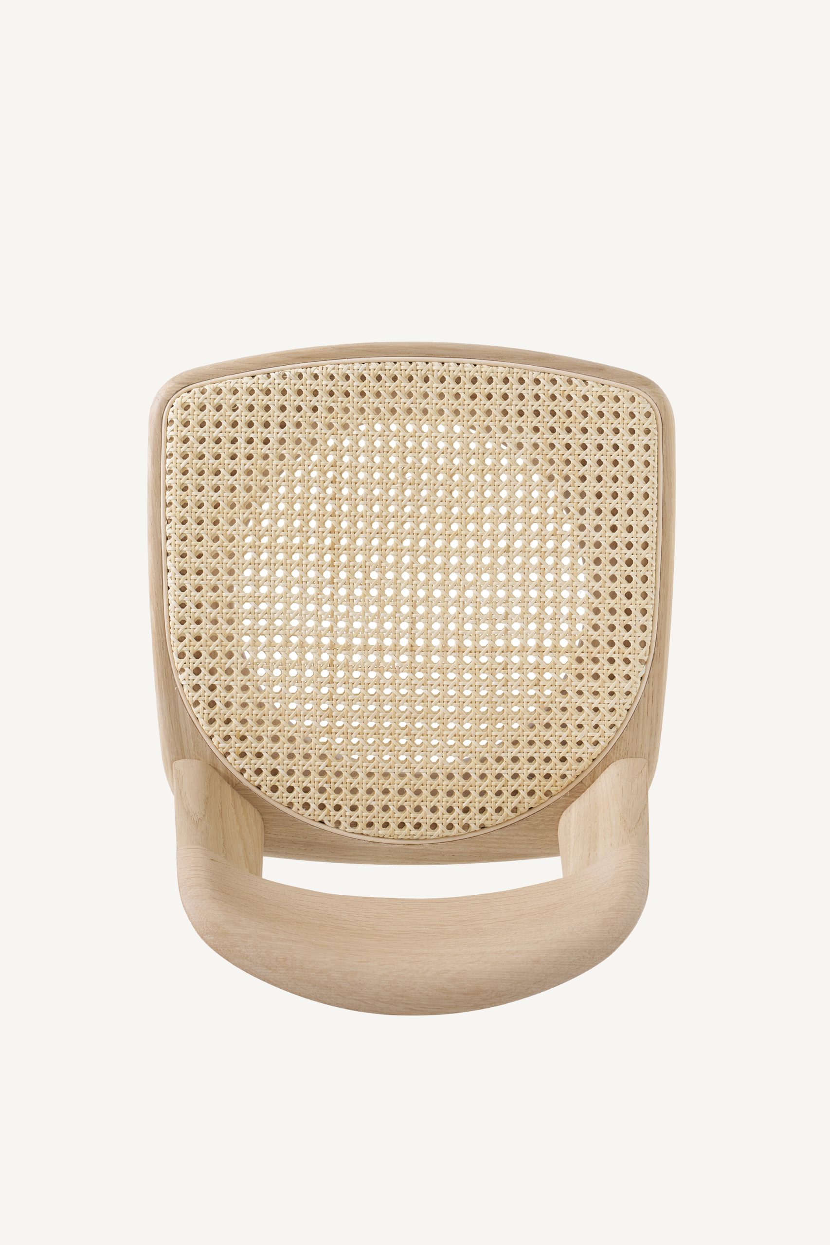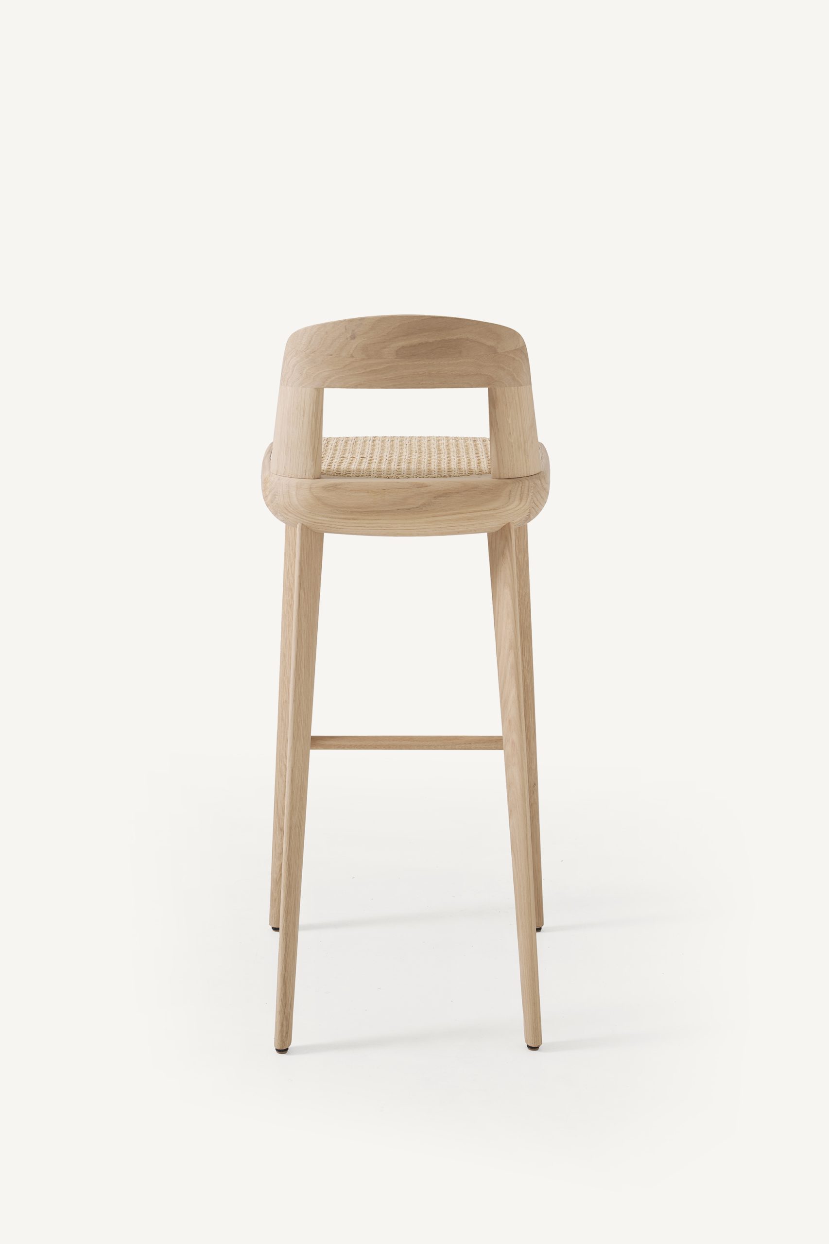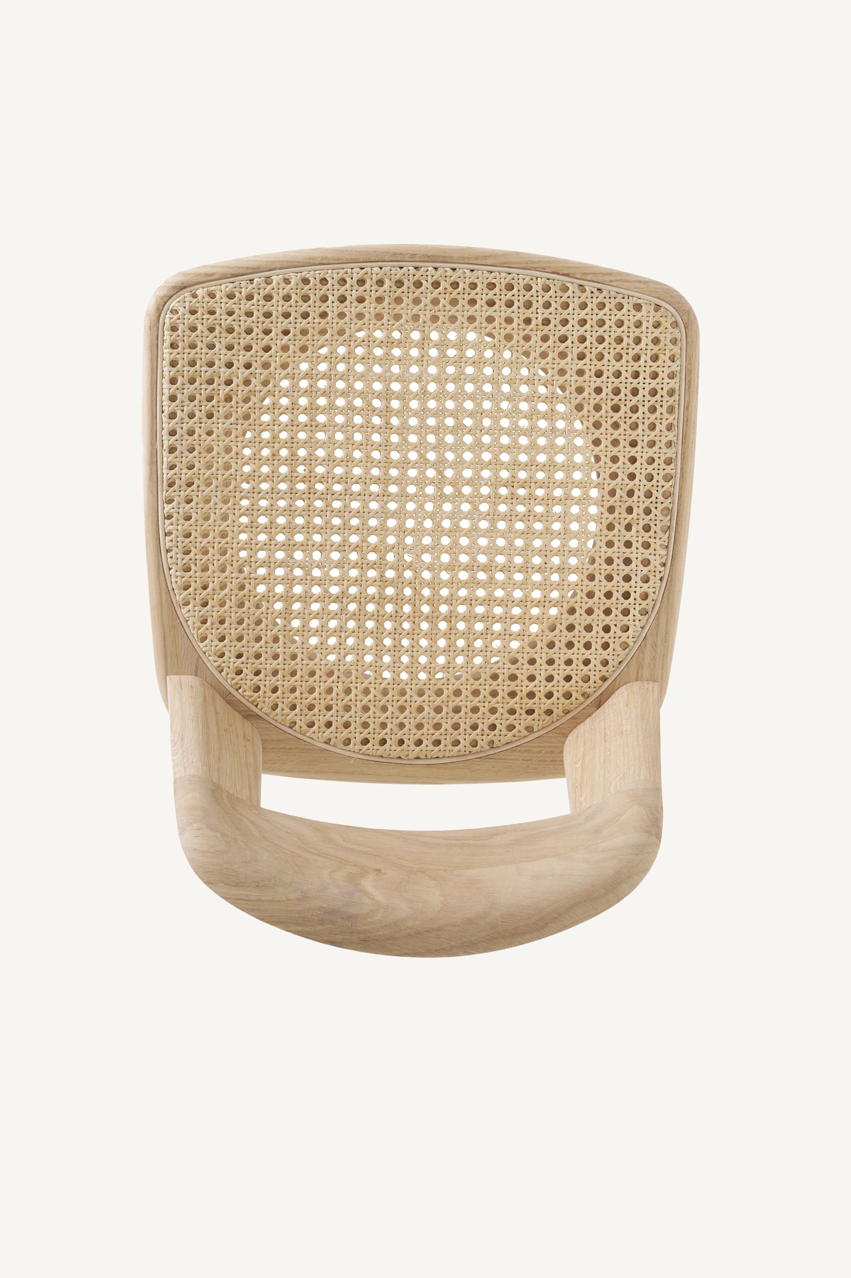 Brutus is intended to look more cut than constructed, as if it has been weathered naturally over time and then manipulated into a single sculptural element. Both the Armchair and Armless Chair versions possess certain aspects of the muscular vernacular of their Brutalist roots, but add smoothness and lightness. The Counter and Bar Stools feature the same construction details with a smaller proportioned seat and lower back. The option of Vienna caning on the seat pays homage to some of our favorite designs from the 1950s, while the upholstered version has a butter- soft leather pad with suspension webbing for maximum comfort. Each Brutus features the same style of elliptical legs which appear broad from one perspective, remarkably thin from another – similar to a shark’s fin.