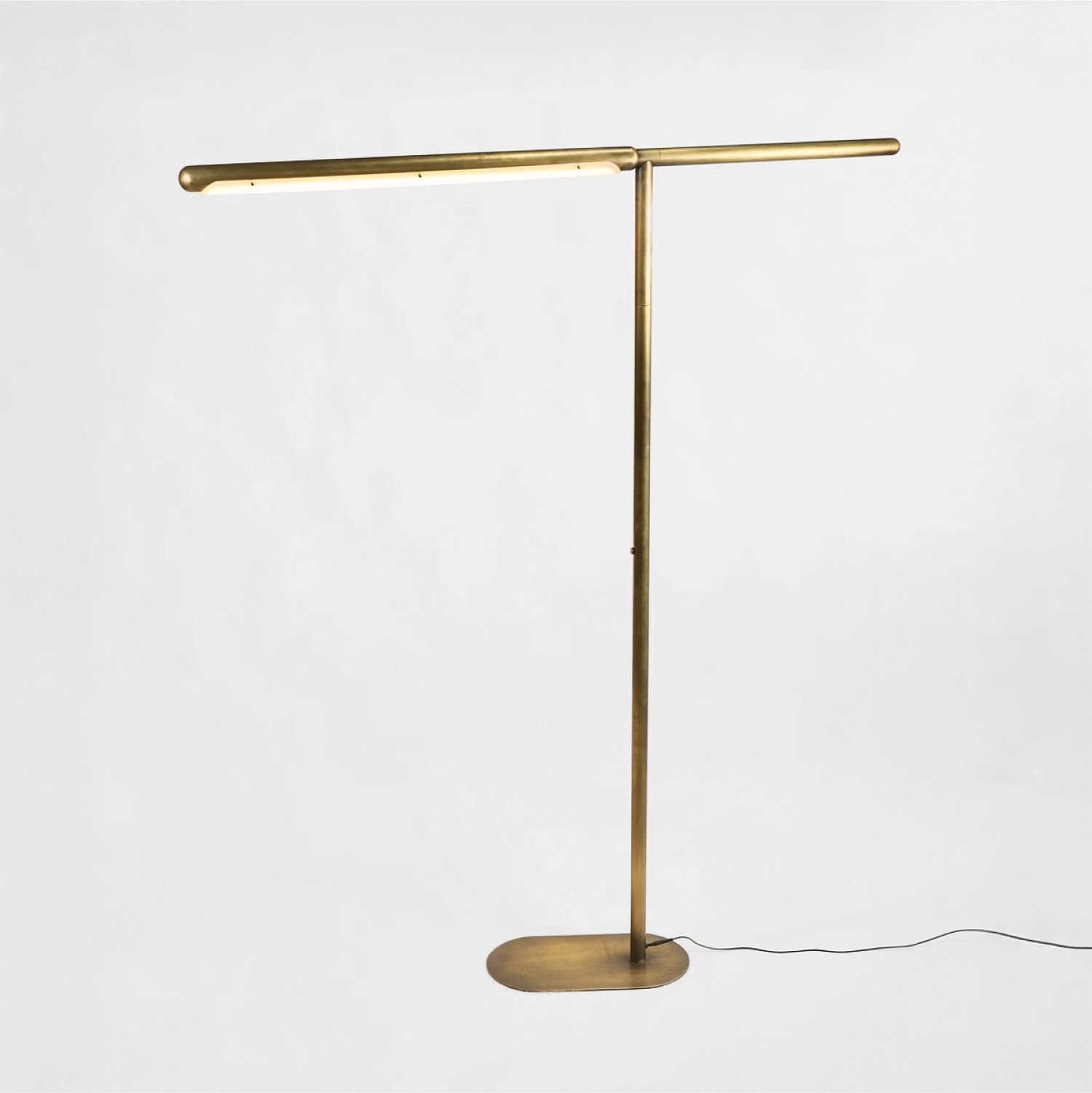 Blackened steel swivel head LED floor lamp with acrylic diffuser.