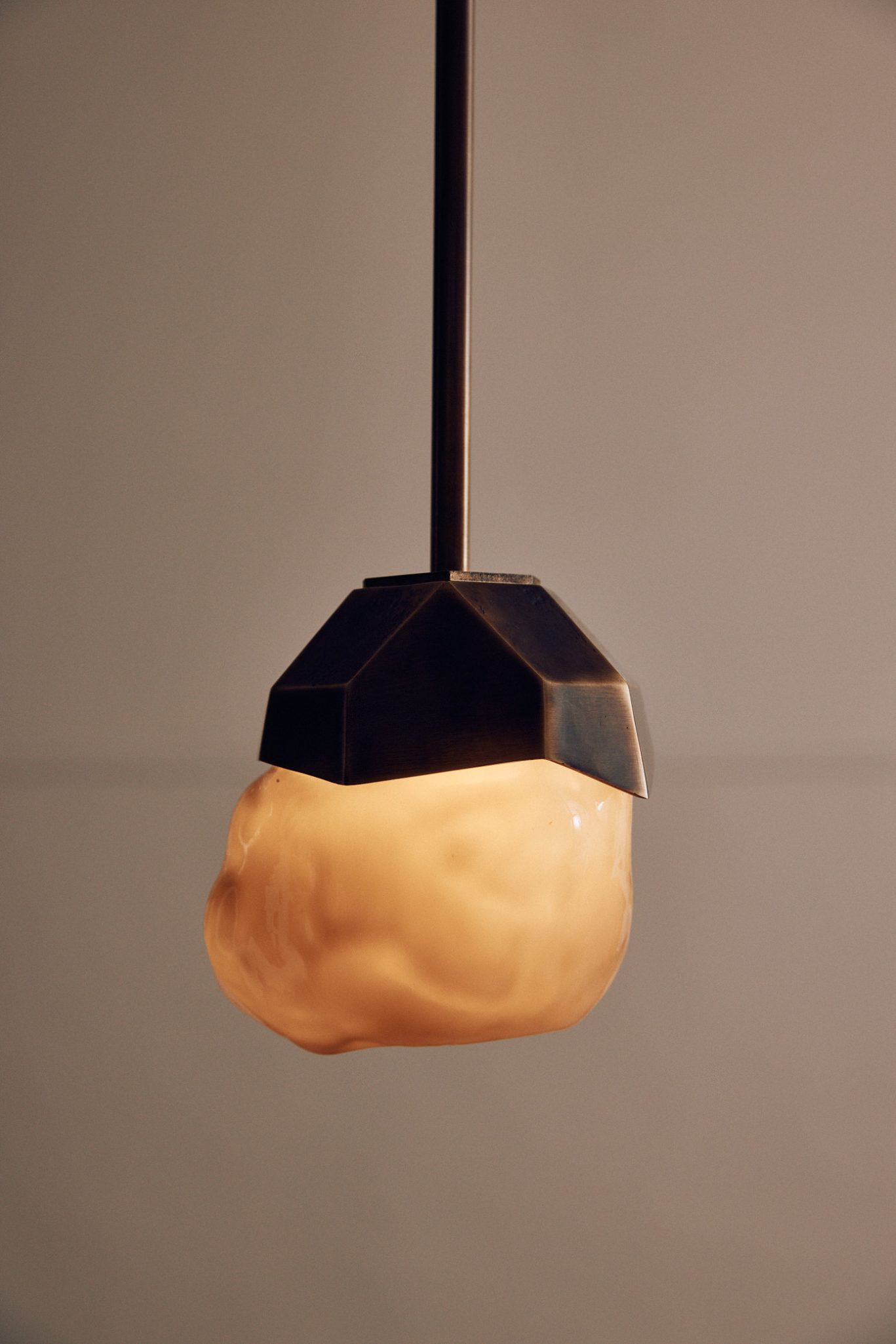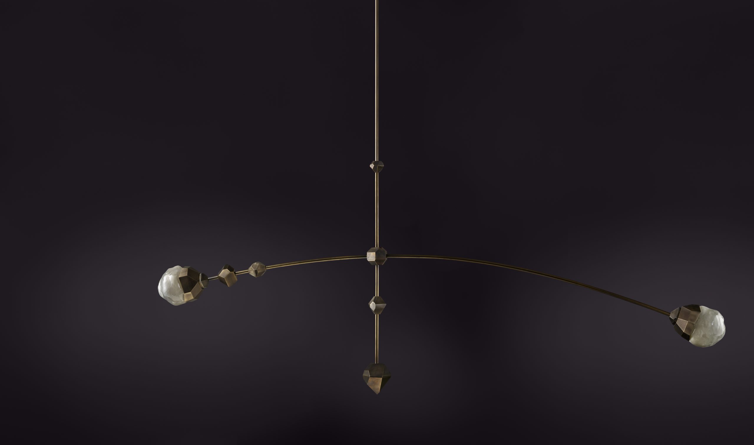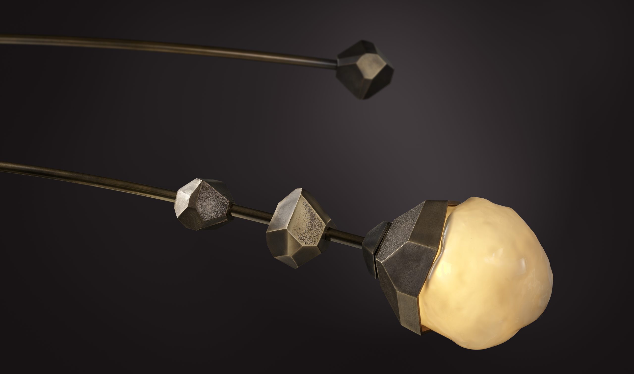 Centred on five luminous stars in a cross-shaped asterism, the collection interprets the celestial beacon’s qualities through organic hand-blown glass forms and faceted sand-cast brass details, imbuing each piece with beauty and perpetuity.