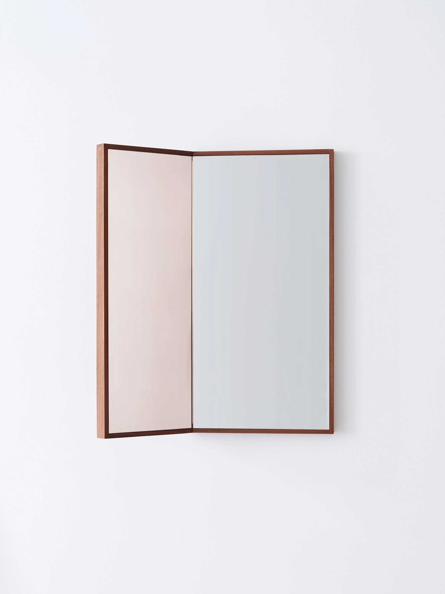 A mirror conceived to offer the viewer both practical use while offering moments of everyday play and discovery through shifted perspectives of geometry and hue. There is a place when looking where you are unseen while everything around you comes into focus.