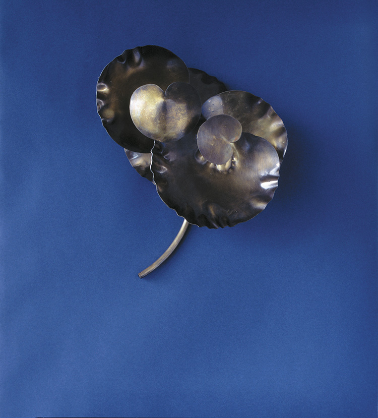 Wall light with leaves in patinated brass or pewter finish, illuminated by LEDs.