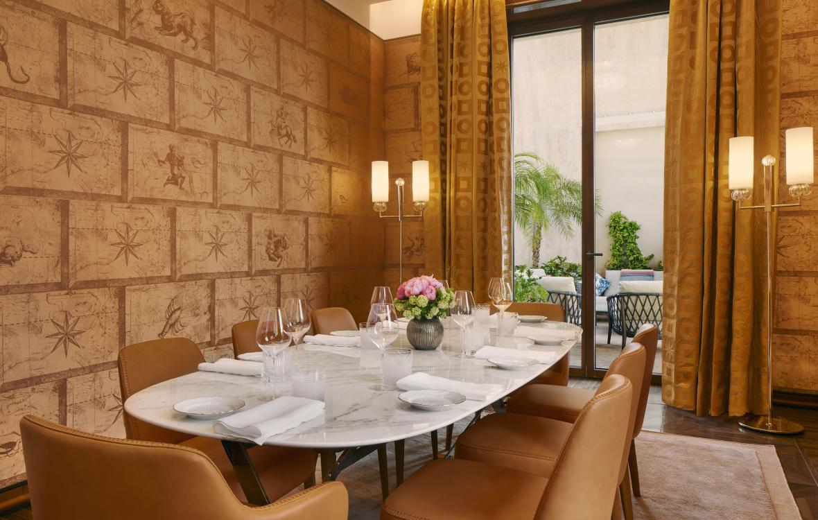 An elegant floor lamp inspired by the classical canons of symmetry and proportions, rendered timeless by the warm and caressing colours: the opaline diffuser is beige, speckled with gold, while the sphere element, called “cipolla” can be of different colours.