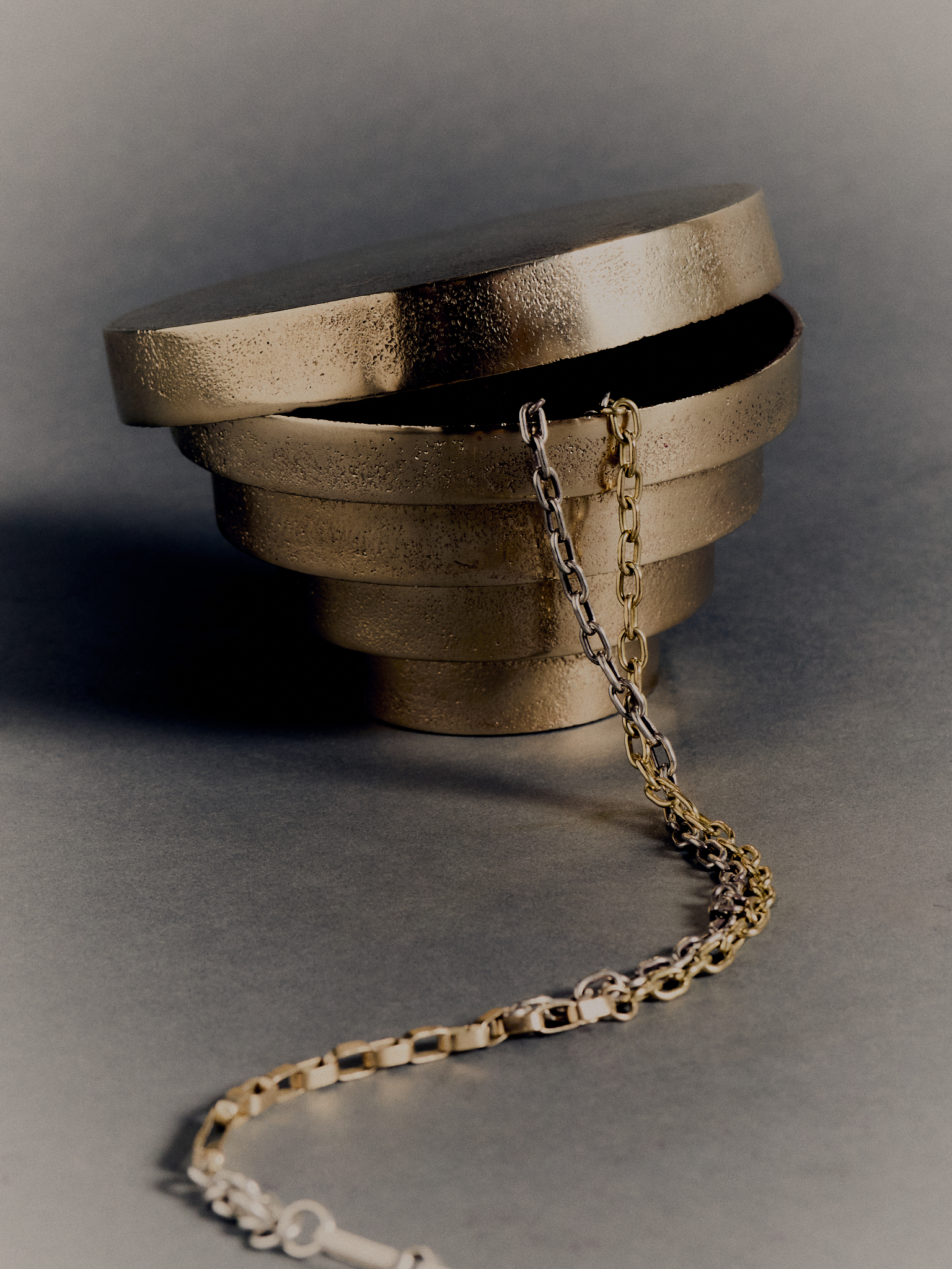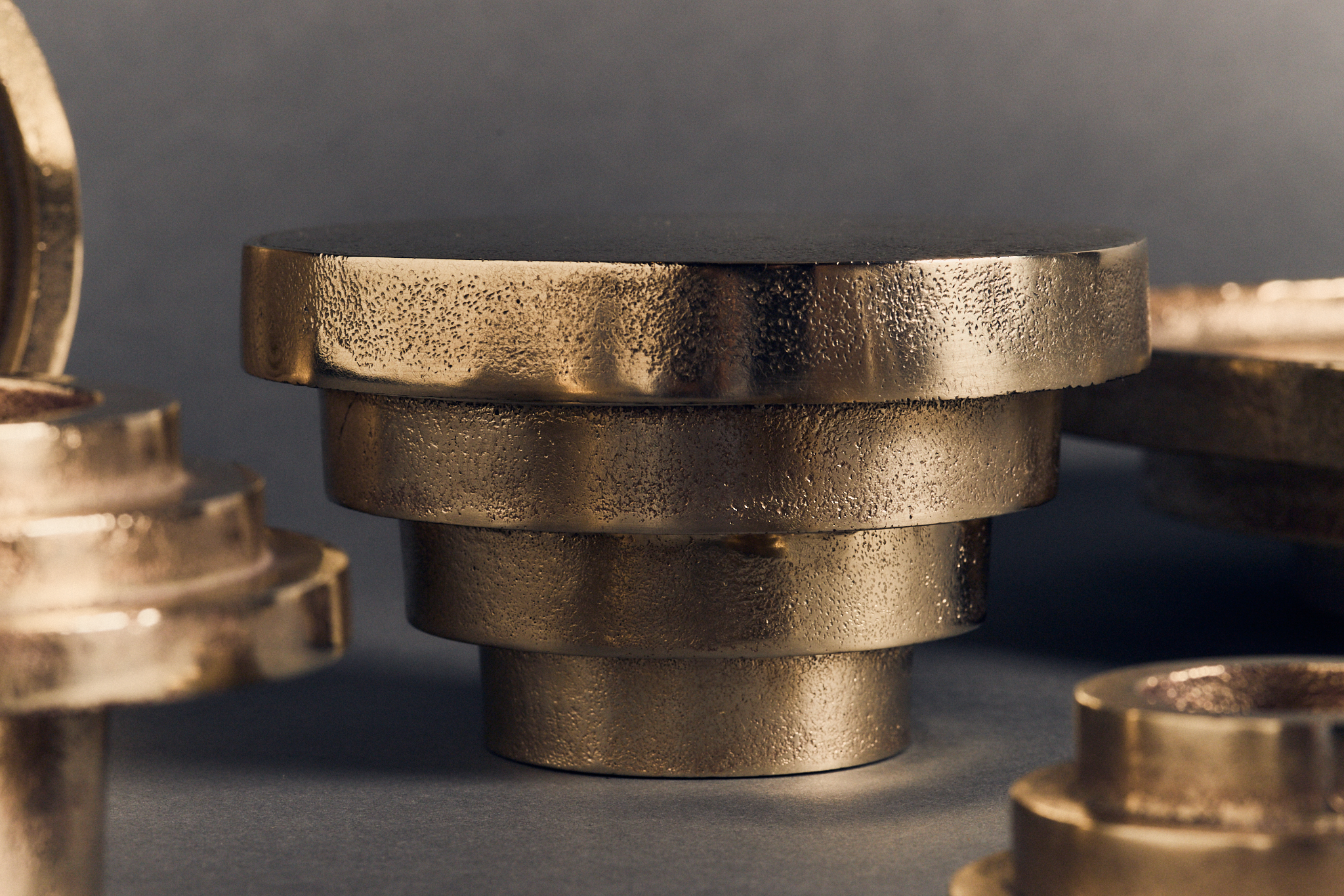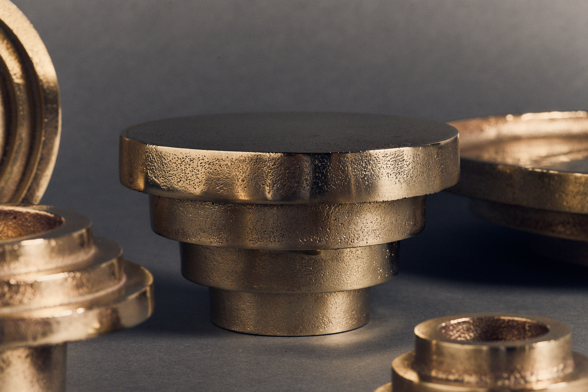 THALAMOS, an exploration of Art Deco silhouettes represented in five ritualistic cast brass forms. Symbolising intimacy, secrecy, and sanctuary, and drawing on the Greek word ‘thalamus’ – meaning an inner chamber often containing sacred treasures – the collection centres around the theme of the inner sanctum; of intimate, daily rituals and personal sanctuary.