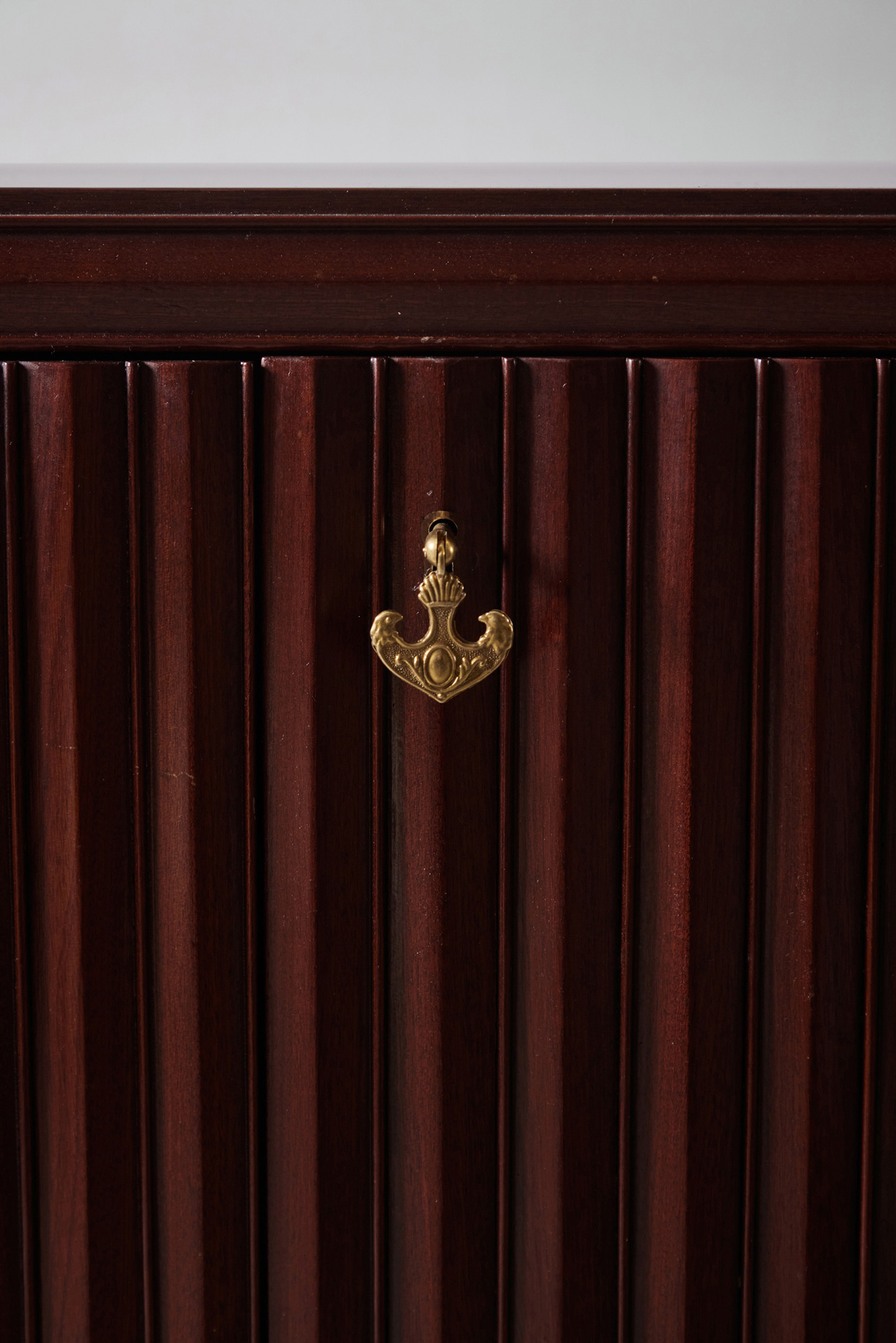 Rosewood ribbed two-door cabinet on X-splay legs.