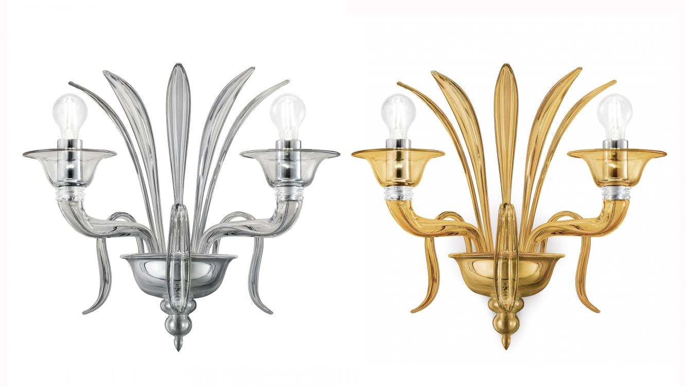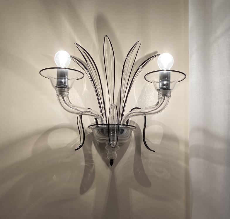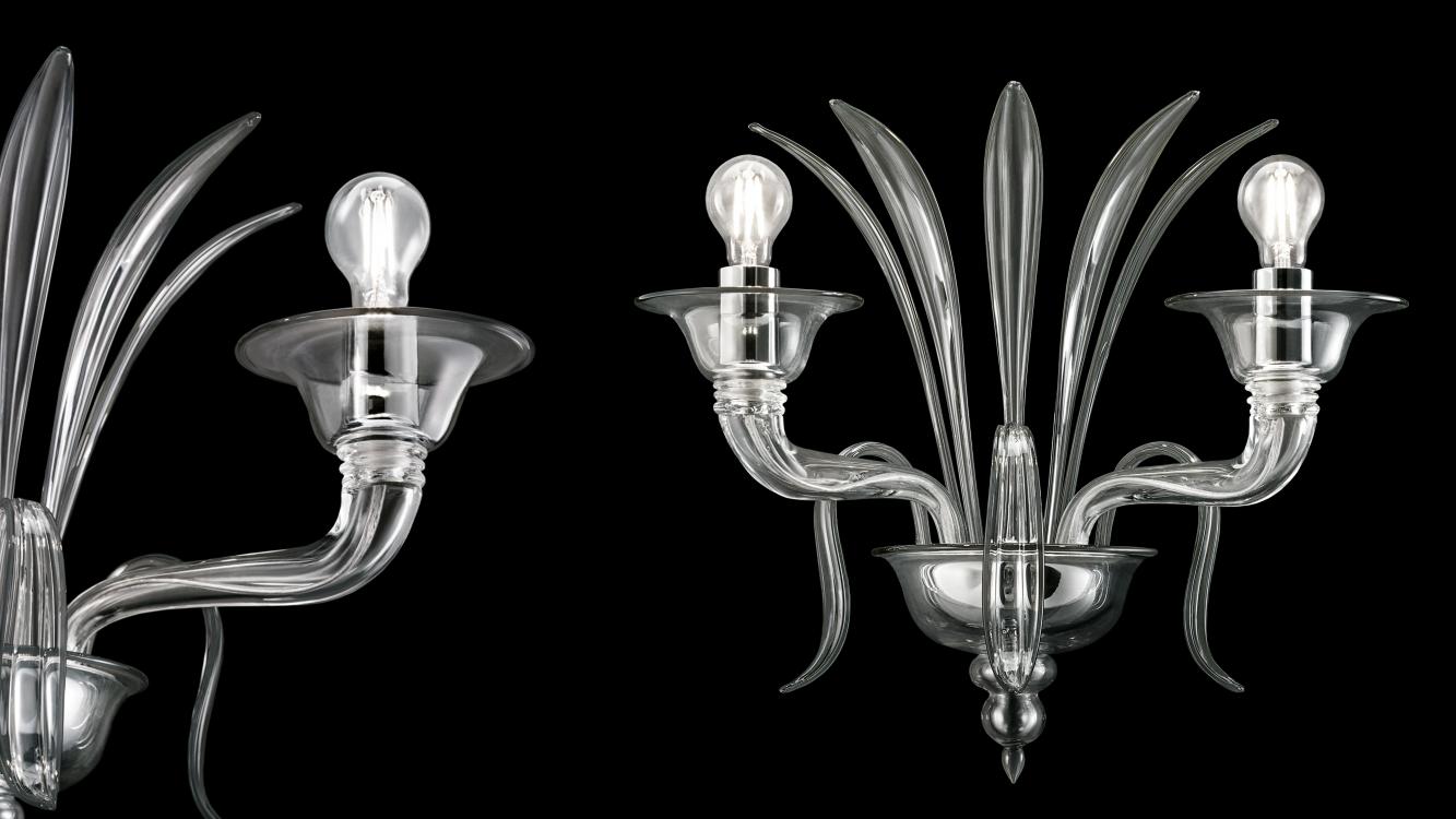 Wall sconces in Venetian crystal handcrafted by our expert master glassmakers. These refined creations add elegance and class to any decor, classic or modern. They represent an approach to luxury that combines an age-old tradition with the most advanced design: true works of art to brighten all kinds of spaces.