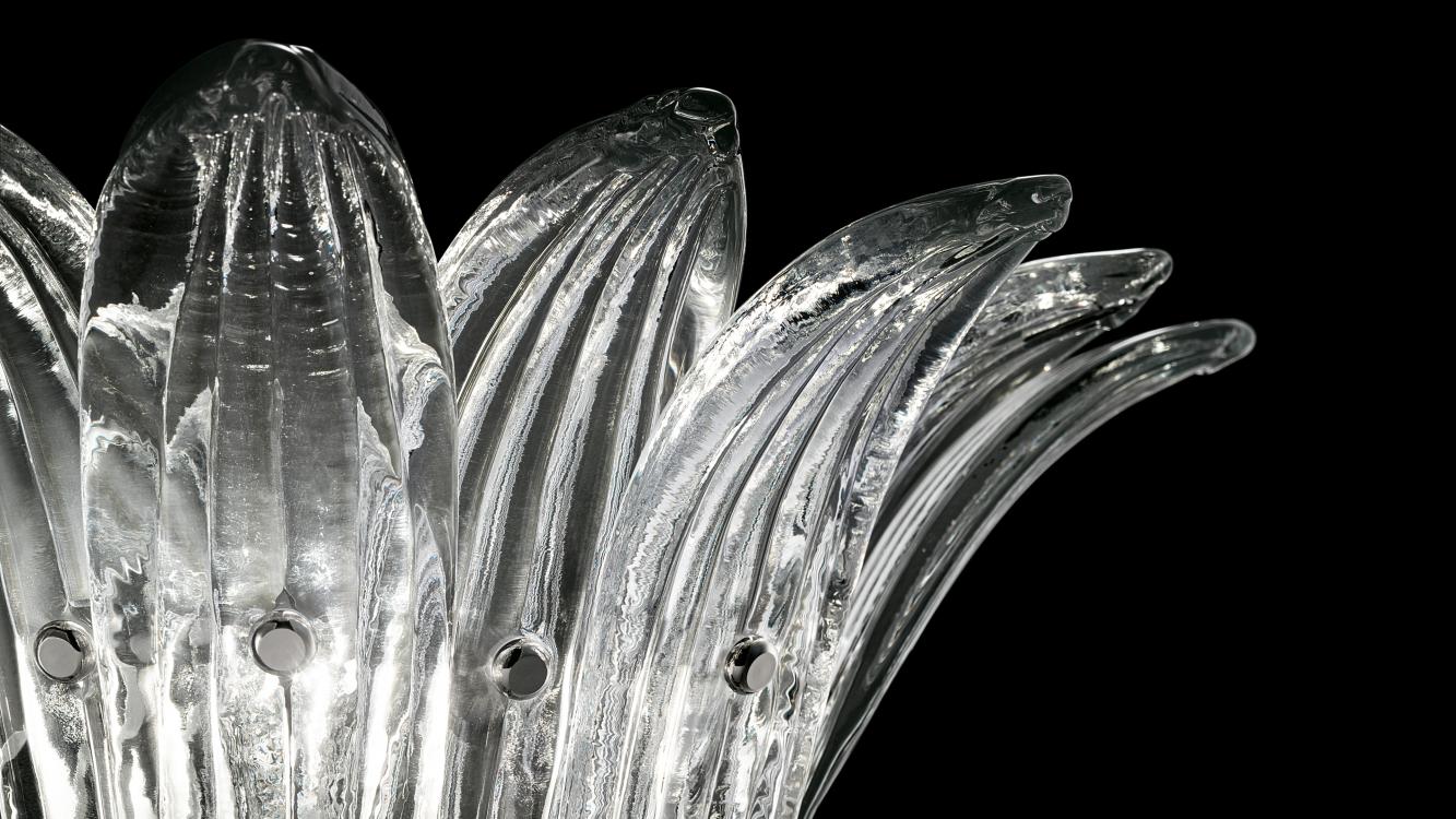 A collection that stands out for precious workmanship rigorously done by hand, result of stylistic research that draws on history, granting it a contemporary interpretation. Fans of crystal leaves for an intriguing take on Art Deco.