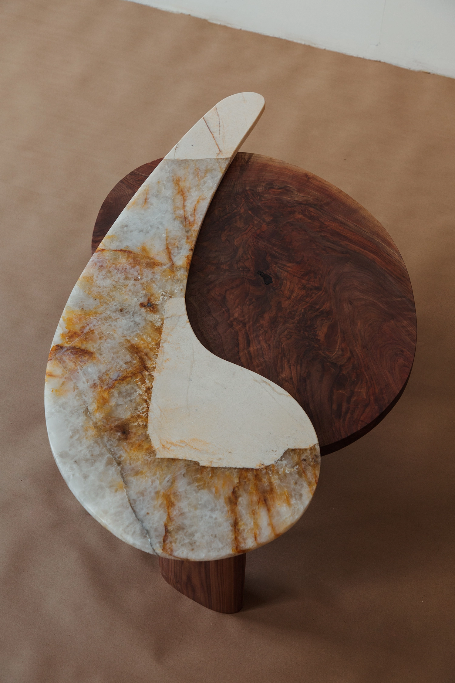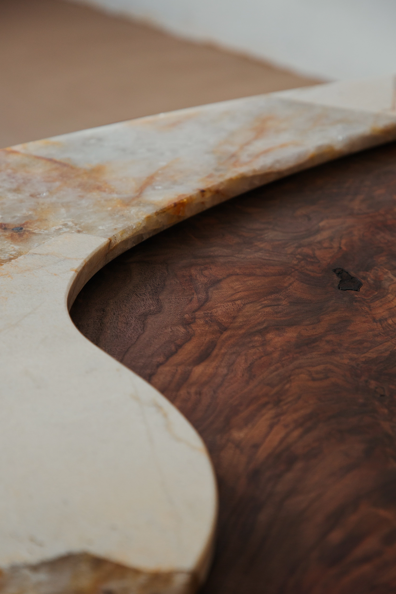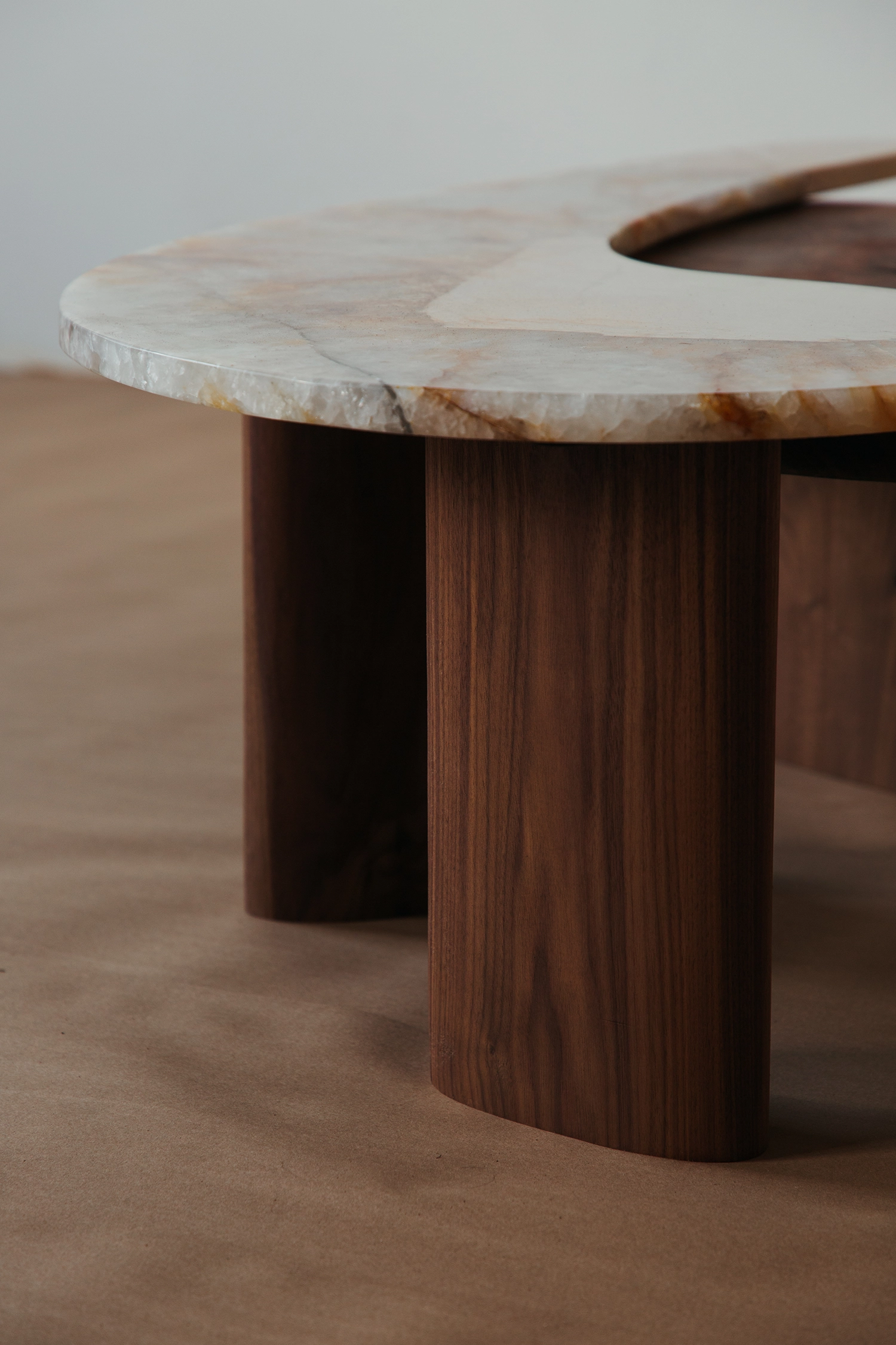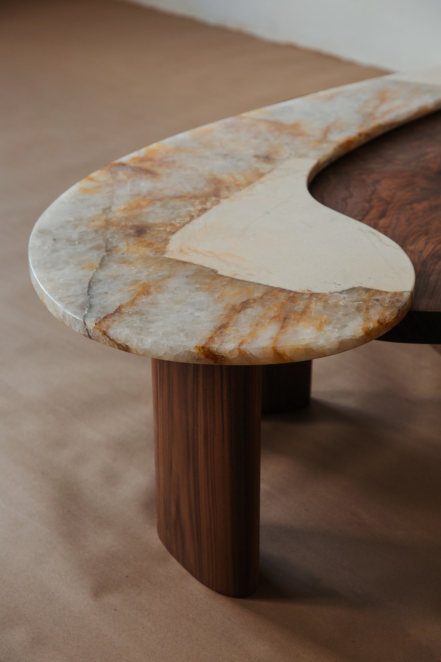 Materials: Hand Shaped Walnut Slab & Legs, Patagonia Quartzite, Natural Oil & Wax Finish