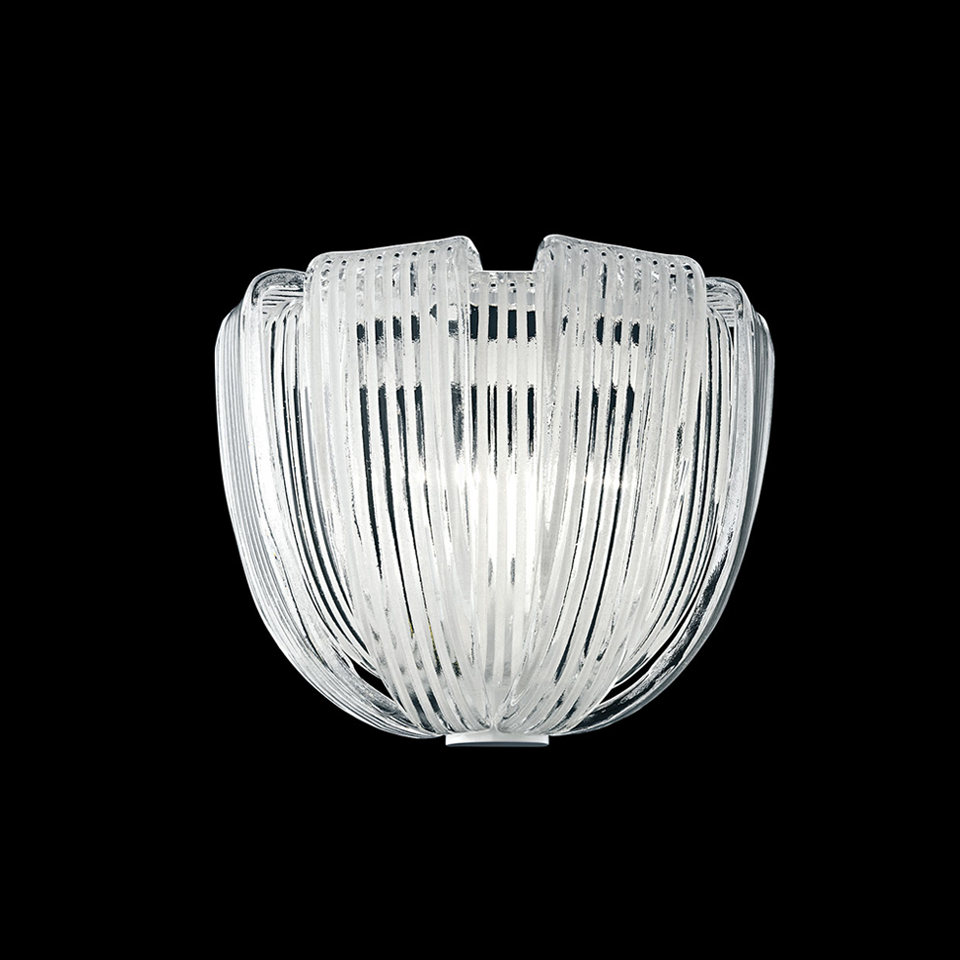 A wall sconce directly inspired by the tradition. A technique patented by Barovier&Toso that allows to obtain a regular striped effect alternating matt and transparent colours on the Venetian crystal elements.