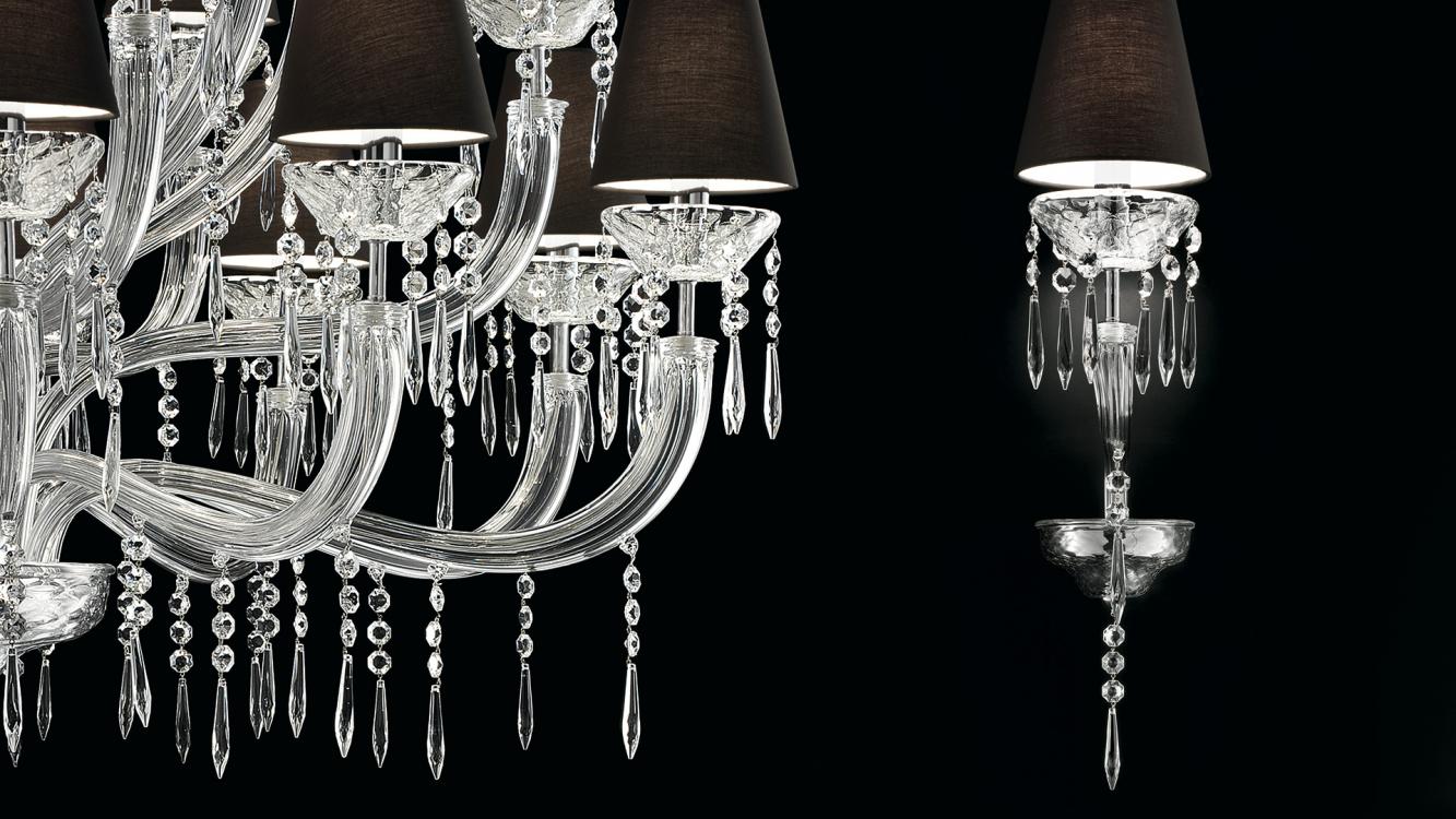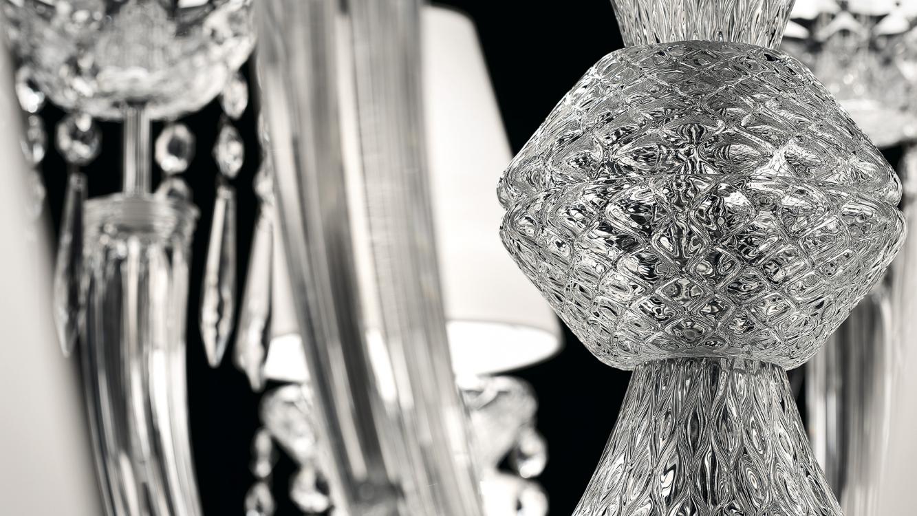 An iconic chandelier with arms par excellence that proudly displays its painstaking workmanship and elegance. Chiseled prisms, sparkling pendants and decorated cups make this a truly unique decor feature, in which Venetian crystal reveals its sculptural splendour.